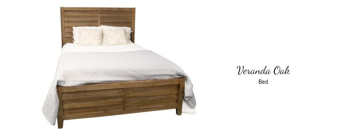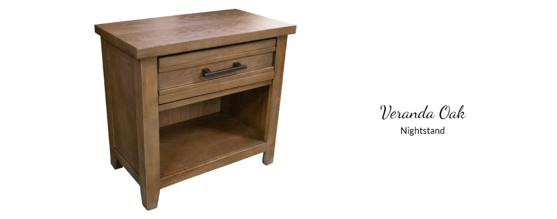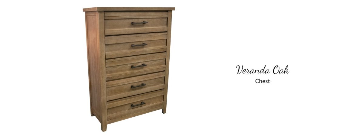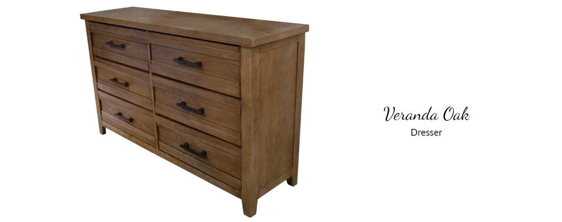 Create a cozy atmosphere with the Veranda Oak bedroom collection. This rustic group leaves it all to the details with its stacked wood pattern, black hardware, and felt lined top drawers. This group is finished in a stunning Oak that is sure to warm up and compliment your space.