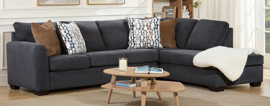 The Finley upholstered sectional is exceptional with its contemporary design and ultimate comfort. The sleek tailoring combined with the beautiful performance chenille fabric makes this group an easy choice for many spaces. The group is complete with accent throw pillows.