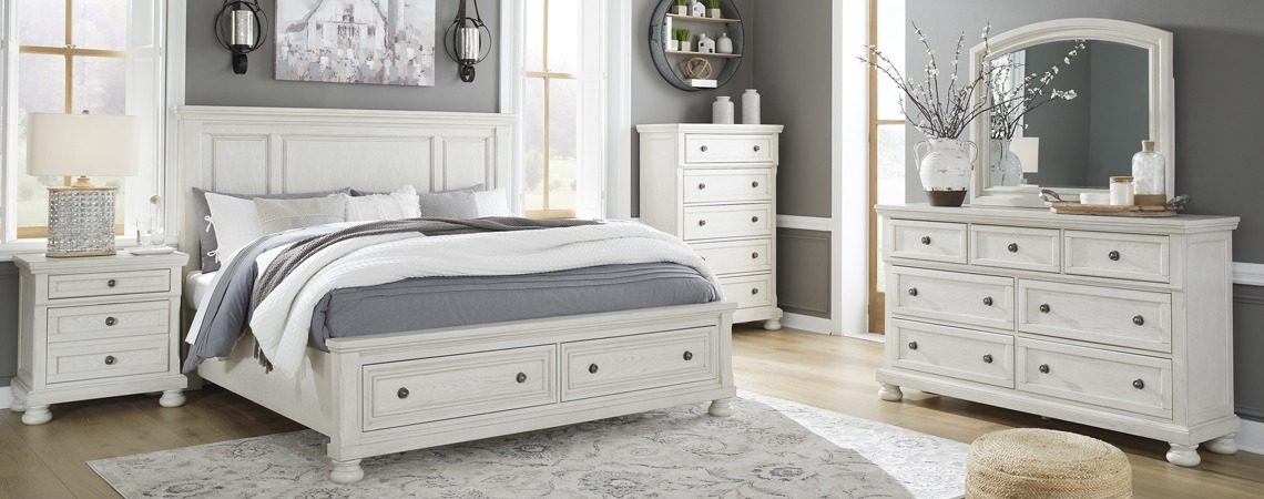 With its clean lines, gentle distressing, and versatile finish, this bedroom group pairs effortlessly with a variety of décor styles—from farmhouse to coastal to transitional—making it a perfect choice for creating a relaxing, stylish bedroom environment.